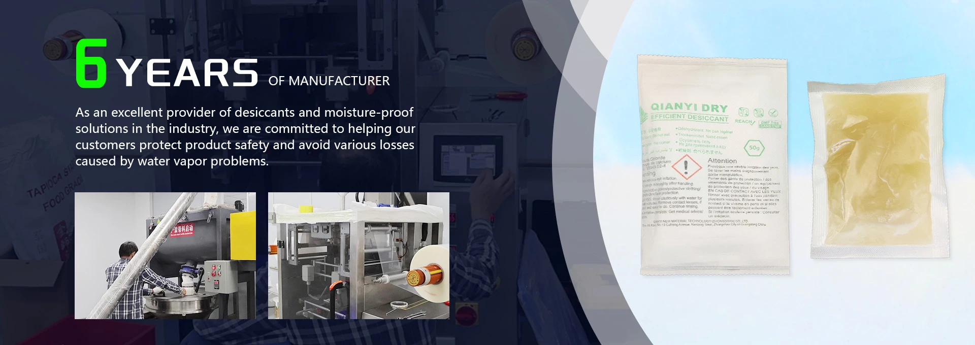 The factory has more than 20 sets of production and packaging equipment, which can produce various specifications, grams, and types of desiccant products.